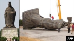 ༄༅།།རྒྱ་ནག་གི་ཧྲན་ཏུང་ཞིང་ཆེན་གྱི་ས་གནས་ཤིག་ཏུ་གོང་མ་དང་པོ་ཆིན་ཧྲི་ཧོང་གི་སྐུ་འདྲ་རྒྱུ་ཆ་ཟངས་ལས་གྲུབ་པ་དང་ལྕི་ཚད་ཊོན་༦་ཡོད་པ། མཐོ་ཚད་ལ་མཱི་ཊར་༡༩་ཅན་ཞིག་བཞེངས་ཡོད་ཅིང་། ཁ་སྔོན་གཟའ་པ་སངས་ཉིན་ཧྲན་ཏུང་ཞིང་ཆེན་གྱི་ས་གནས་དེར་རླུང་འཚུབ་དྲག་པོ་གཡུགས་ནས་ཆིན་ཧྲི་ཧོང་གི་སྐུ་འདྲ་དེ་ཁ་བུབ་ཏུ་རིལ་ཏེ། རྒྱ་ནག་གི་གོང་མ་དང་པོ་དེའི་ཞལ་རས་ས་ནང་དུ་བརྡབས་ནས་བཅགས་ཉོག་བཟོས་པའི་གནས་ཚུལ་ཐོན་འདུག ཡིན་ནའང་རྒྱ་ནག་གཞུང་གིས་འཕྲལ་དུ་ཆིན་ཧྲི་ཧོང་གི་སྐུ་འདྲ་དེ་འཕྲུལ་ཆས་ཀྱིས་ཡར་བསླངས་ནས་རྐྱེན་ངན་ཞིག་བྱུང་བ་གསང་ཐབས་བྱས། སྐུ་བརྙན་དེའི་ཞིག་གསོའི་ལས་དོན་འགན་འཛིན་ཞིག་གིས་དེང་སྐབས་མི་ཚང་མར་ལག་ཐོགས་ཁ་པར་དང་པར་ཆས་ཡོད་པས་སྦ་གསང་བྱ་ཐབས་མེད། འདི་ལ་སྦ་གསང་ཇི་ལྟར་བྱ་ཐུབ་བམ་ཞེས་བཤད་ཡོད་པ་མ་ཟད། ཆིན་ཧྲི་ཧོང་གི་ཟངས་ཀྱི་སྐུ་འདྲ་དེར་གཟུངས་གཞུག་མེད་པར་ཁོག་སྟོང་རེད་ཅེས་གསར་འགོད་པས་གནས་ཚུལ་སྤེལ་འདུག སྤྱི་ལོའི་སྔོན་གྱི་༢༢༡-༢༠༦་བར་དུ་ཆིན་ཧྲི་ཧོང་གིས་སྲིད་དབང་བཟུང་ནས་རྒྱ་ནག་ལྕགས་རིའི་ཆ་ཤས་ཤིག་བརྩིགས་པ་དང་རྒྱ་ནག་གཅིག་གྱུར་བྱས་པའི་བྱས་རྗེས་བཞག་ཡོད་པ་རེད།།