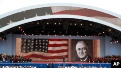 ཨ་རིའི་སྲིད་འཛིན་ཌོ་ནལ་ཊམ་གྱིས་དེ་རིང་ང་ཚོས་མཚོ་ཁ་འདིར་ཚེ་སྲོག་ཤོར་པའི་སྔོན་གཤེགས་དཔའ་བོ་རྣམས་ལ་རྗེས་དྲན་དང་ནོར་མན་ཌིའི་དཔུང་འཇུག་ལ་ཞུགས་པའི་དཔའ་རྒོད་ཚོའི་སྙིང་སྟོབས་ལ་རྗེས་སུ་ཡི་རངས་ཞུ་རྒྱུ་ཡིན། ད་ལྟ་འཚོ་ཞིང་གཞེས་པའི་དཔའ་བོ་རྣམས་ཀྱིས་སྤྱི་ཚོགས་དཔལ་ཡོན་ལ་སྲུང་སྐྱོབ་དང་རང་དབང་ལ་སྲུང་སྐྱོབ་བྱས་ཡོད་པས་ཁྱེད་རྣམ་པ་ང་ཚོ་དམངས་གཙོའི་རྒྱལ་ཁབ་ཁག་གི་གཟི་བརྗིད་ཡིན། ང་ཚོས་སྙིང་ཁུང་རུས་པའི་གཏིང་ནས་ཁྱེད་རྣམ་པར་བཀའ་དྲིན་ཆེ་ཞུ་རྒྱུ་ཡིན་ཞེས་བཤད། ཧྥ་རན་སིའི་སྲིད་འཛིན་མེཀ་རོན་གྱིས་ཧྥ་རན་སི་གཞུང་དམངས་གཉིས་ཀས་ད་དུང་ཡང་ང་ཚོའི་རང་དབང་འདི་སུའི་བཀའ་དྲིན་ལ་བརྟེན་ནས་བྱུང་བ་ཡིན་པ་བརྗེད་མེད་ཅེས་ཧྥ་སྐད་དུ་གཏམ་བཤད་བྱས་པར་མ་ཟད། དེ་ནས་ཁོང་ཨ་མི་རི་ཀ་དང་དབྱིན་ཇི། ཁེ་ན་ཌ་དང་ཨོ་གླིང་རྒྱལ་ཁབ། ནེ་དྷར་ལན་ཌི་དང་ནེའུ་ཛི་ལན་ཌི། ཕོ་ལན་ཌི་སོགས་ཀྱི་ནོར་མན་ཌིའི་དཔུང་འཇུག་ལ་དངོས་སུ་ཞུགས་པའི་དམག་ཞབས་ཟུར་པ་ཚོར་ཁ་ཕྱོགས་ནས་དབྱིན་སྐད་དུ་དམག་ཞབས་ཟུར་པ་ཁྱེད་རྣམས་ཧྥ་རན་སི་ལ་བཀའ་དྲིན་ཆེན་པོ་ཡིན་པ་སྙིང་བཅངས་ཡིན། ང་ཚོའི་རང་དབང་ནི་ཁྱེད་རྣམ་པའི་བཀའ་དྲིན་ལ་བརྟེན་ནས་བྱུང་བ་རེད། དེ་རིང་ངས་ཧྥ་རན་སི་གཞུང་དམངས་གཉིས་ཀྱི་ཚབ་ཞུས་ནས་རྣམ་པ་ཚོར་བཀའ་དྲིན་ཆེ་ཞུ་རྒྱུ་ཡིན་ཞེས་གཏམ་བཤད་བྱས་འདུག