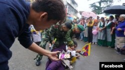 བཞུགས་སྒར་རྡ་རམ་ས་ལའི་སྲང་ལམ་གྱི་མི་ཚོགས་འདུ་སར་དབུས་བོད་ཀྱི་བུད་མེད་ལྷན་ཚོགས་དང་བོད་རང་བཙན་སློབ་ཕྲུག་ཚོགས་པ་གཉིས་མཉམ་འབྲེལ་གྱིས་བོད་ནང་གི་གཞིས་ལུས་བོད་པ་ཚོའི་གནས་སྟངས་དང་། ལྷག་པར་དུ་ཞི་བའི་ངོ་རྒོལ་སོགས་ཀྱི་ལས་འགུལ་སྐབས་སུ་རྒྱ་ནག་གཞུང་གིས་འཛིན་བཟུང་བཙན་ཁྲིད་བྱེད་བཞིན་པ་རྣམས་གཏམ་བརྗོད་ལམ་ནས་འཁྲབ་སྟོན་བྱས་ཏེ་རྒྱལ་སྤྱིའི་གར་སོང་ཆ་མེད་ཀྱི་ཉིན་མོར་སྲུང་བརྩི་ཞུས་འདུག་པའི་སྐོར། ཚེ་རིང་སྐྱིད་ལགས་ཀྱིས་སྙན་སྒྲོན་ཞུ་ཡི་རེད།།