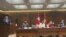 ༄༅།། ཨ་རིའི་གྲོས་ཚོགས་གོང་མའི་འཐུས་མི་ཊ་མི་ཌག་ཝོར་ཐེ་མཚོ་གླིང་ཡུལ་གྲུ་ཐེ་ཝན་ལ་འཚམས་འདྲིར་ཕེབས་ཏེ་སྲིད་འཛིན་ཚེ་དབྱིན་ཝེན་ལ་ཐུག་འཕྲད་གྲོས་མོལ་བྱས་ཡོད་ཅིང་། ཨ་རིའི་ཡུལ་སྲུང་དམག་དང་ཐེ་ཝན་གྱི་རྒྱལ་སྲུང་དམག་དཔུང་མཉམ་འབྲེལ་བྱ་རྒྱུའི་འཆར་འགོད་བྱེད་ཀྱི་ཡོད་ཅེས་གསལ་བསྒྲགས་སྤེལ་ཡོད་པའི་སྐོར།